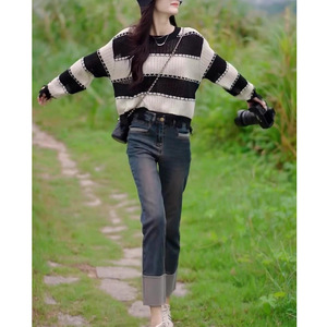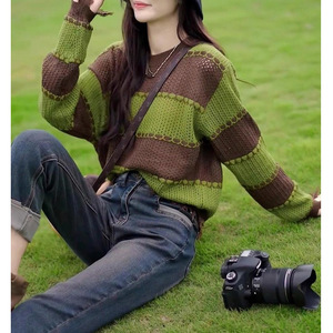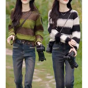 镂空拼色针织衫女上衣秋装外搭新款2025短款欧货流行漂亮毛衣外套