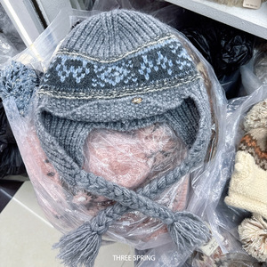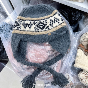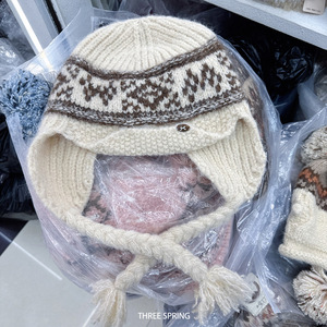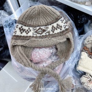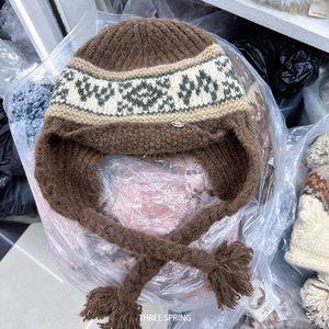 批发韩国2025年早秋新款民族风条纹拼色毛线帽护耳显脸小雷锋帽女