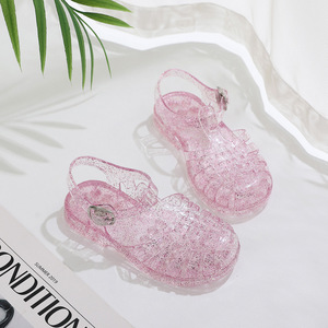 夏季儿童凉鞋外穿塑料平底镂空凉鞋百搭果冻搭扣透明鸟巢女童凉鞋