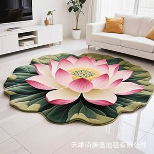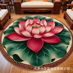 莲花打坐中式水晶绒地毯客厅茶几沙发装饰毯玄关垫卧室床边毯脚垫
