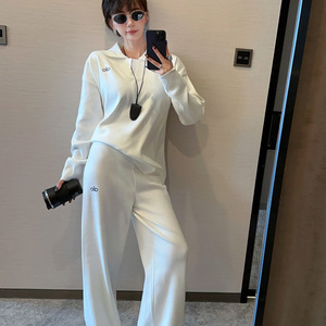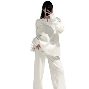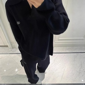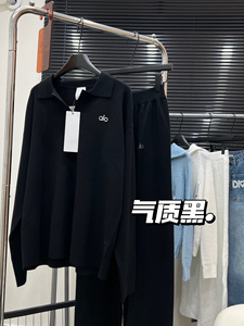 alo同款瑜伽健身套装女老钱风polo领套头针织衫休闲阔腿裤两件套