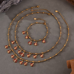梦幻 跨境个性新款夹珠链条项链甲壳虫砝码彩釉镶锆石手链套装
