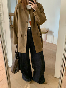 GAGD 韩版复古翻领皮衣外套2025秋季通勤百搭显瘦中长款夹克外套