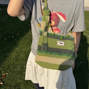 Tagi.机灵果子手工串珠大容量可调节休闲单肩斜挎包编织包袋