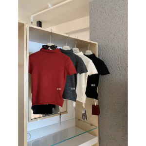 WGWE秋季韩系高级感打底针织衫百搭显瘦修身半高领短袖T恤女W7197