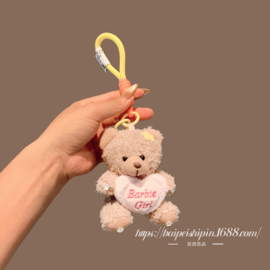 格子爱心小熊抱爱心熊熊钥匙扣春季2025手机链百搭韩系闪亮包挂饰