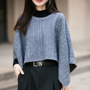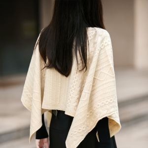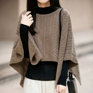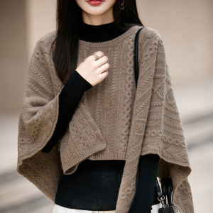 100羊毛针织大披肩秋冬保暖套头斗篷时尚宽松披风百搭毛衣外套女
