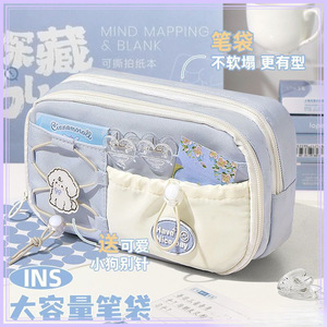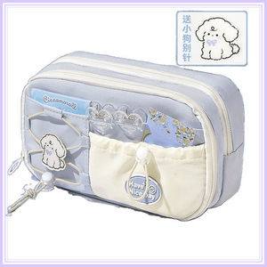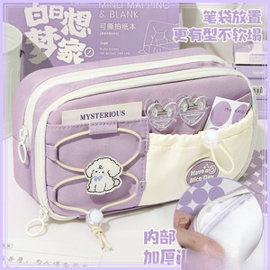 可爱小狗笔袋9层大容量新款抽绳女生盐系文具盒初中高颜值铅笔盒