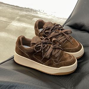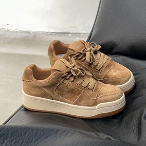 真皮休闲鞋女2025秋季新款系带圆头厚底舒适百搭时尚运动板鞋