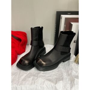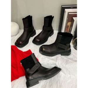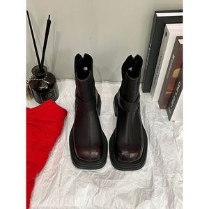 壹米恩2025秋季新款真皮复古方头百搭厚底增高骑士靴马丁靴短靴女