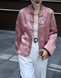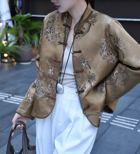 真丝羊毛提花外套好穿小宽松版型小立领百搭上衣