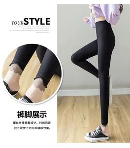 加绒加厚保暖裤蕾丝花边高腰打底裤女外穿长裤弹力紧身显瘦打底裤