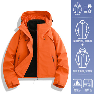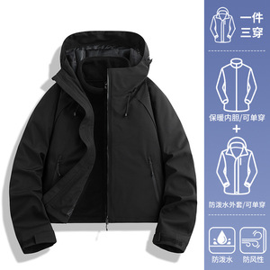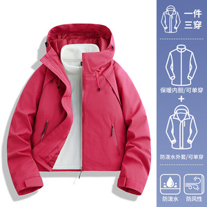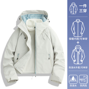 大牌蓝色冲锋衣女2025新款秋冬三合一户外防风加绒可拆卸短款外套