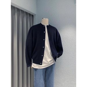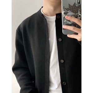 黑色开衫字母立领毛衣潮牌慵懒宽松百搭秋季后背字母针织衫外套