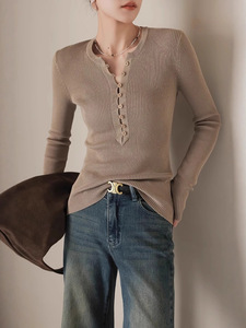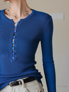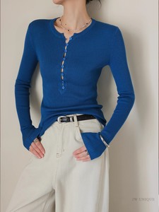JWUNIQUE酒窝蓝色长袖半开领针织衫女2025年秋季新款修身显瘦上衣