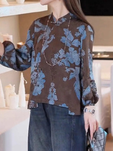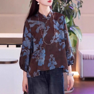 新中式国风长袖衬衫女2025秋季新款洋气宽松显瘦立领衬衣气质上衣