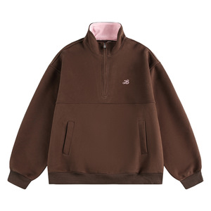 撞色字母半拉链套头卫衣女款2025年秋季美式情侣重磅百搭宽松上衣