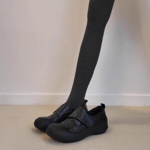 羊皮版~法式通勤圆头厚底小皮鞋女气质黑色乐福鞋深口软底单鞋