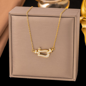 【8315】微镶马蹄扣 项链【金色】