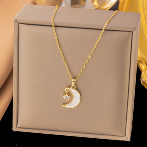 【8085】白贝月亮0链 项链【金色】