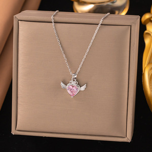 【8214】铜吊坠—粉钻爱心翅膀 项链【银色】