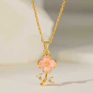 【8137】粉色花朵 项链 【金色】