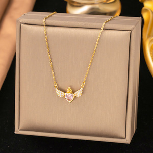 【8157】粉钻皇冠翅膀 项链【金色】