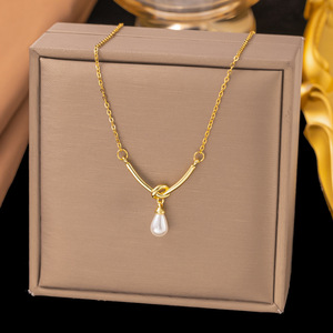 【8071】打结珍珠项链【金色】