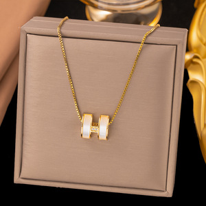 【8096】白贝字母H-项链【金色】