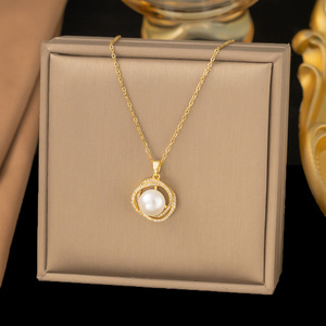 【8331】珍珠贝壳 项链【金色】