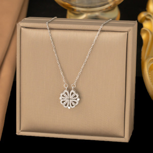 【8197】锆石四叶草 项链【银色】