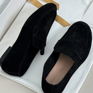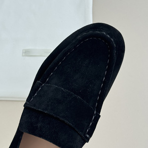 欧美平跟牛反绒全皮马克线简约the乐福一脚蹬透气欧美女青年单鞋