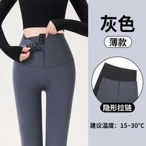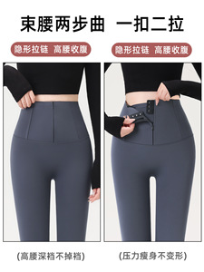 排扣鲨鱼裤女外穿2025新款春秋薄绒打底裤收腹提臀束腰瑜伽芭比裤