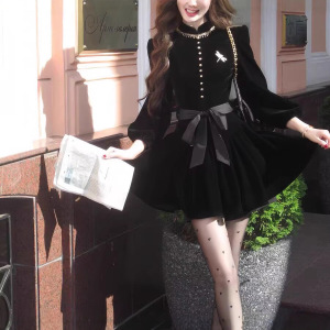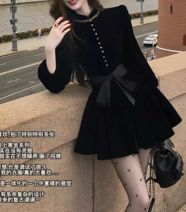 伯拉德千金高级感法式复古黑色丝绒连衣裙外套配裙裤小个子短裙秋