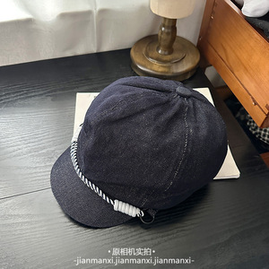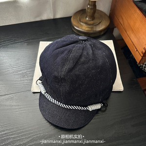 2025新款纯色手工编绳鸭舌八角帽早秋休闲简约时尚百搭画家报童帽