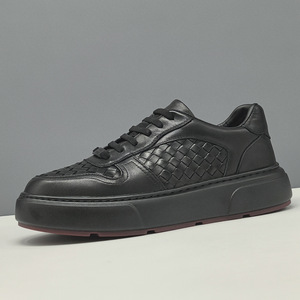 男士头层牛皮黑色百搭板鞋男款潮鞋真皮编织欧洲站男鞋厚底休闲鞋
