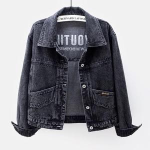 复古港风牛仔外套女秋季新款短款宽松设计感刺绣休闲百搭夹克上衣