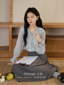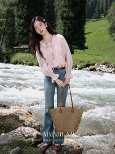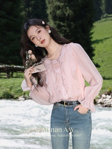 鹿向南「樱梨诗集」粉色法式长袖衬衫女2025秋冬设计感别致上衣