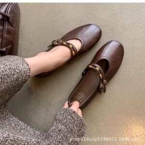 羊皮版~甜美温柔时尚ins风一字带显瘦玛丽珍芭蕾舞真皮平底单鞋女