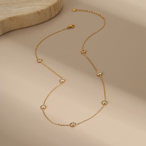 跨境新款玛瑙贝母镂空爱心锁骨链不锈钢项链镶嵌锆石百搭精致项饰