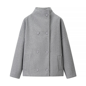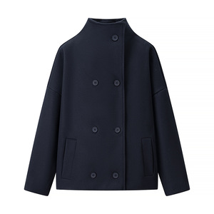 现货--欧美跨境秋季新款中性风百搭气质通勤立领双排扣短外套大衣