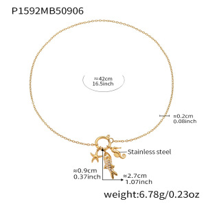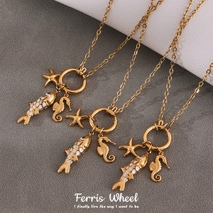 摩天轮不锈钢小鱼吊坠项链 镀18k真金时尚百搭海洋沙滩度假风首饰