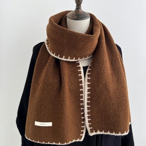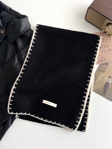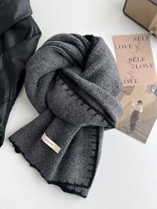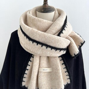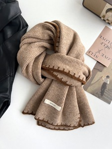 含羊毛锁边高级感针织毛线米白色围巾学生男女情侣款冬季保暖围脖