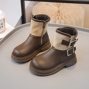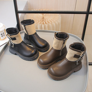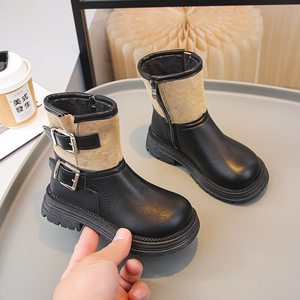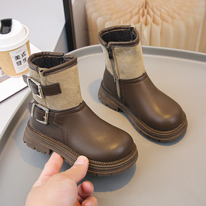 儿童靴子低帮超软秋冬女童皮靴公主风加绒马丁靴皮带扣男童短靴