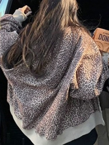 心头爱!面料豹纹连帽外套女早秋休闲风