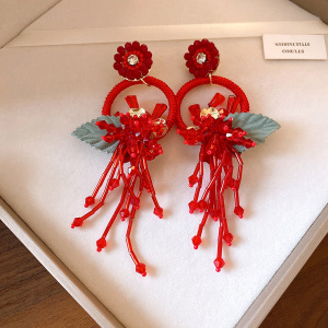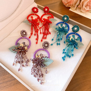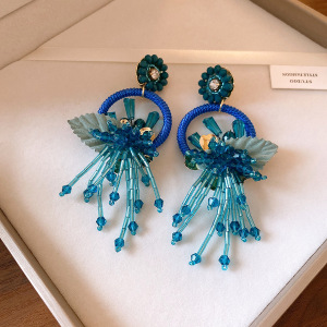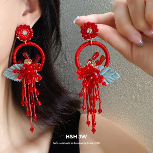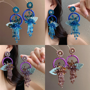 银针复古圆形树叶流苏耳环轻奢高级感耳钉民族风时尚百搭耳饰批发