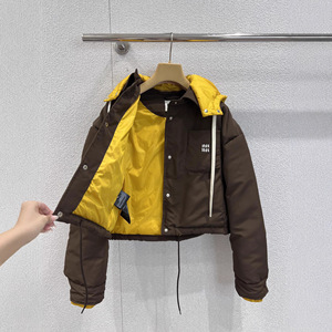 2025秋季新款南油miu 可甜可盐气质少女风撞色连帽短款羽绒服外套