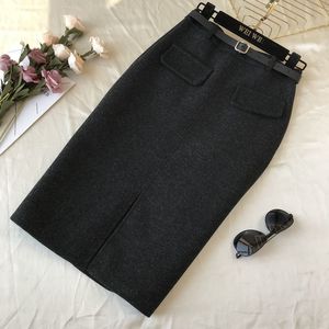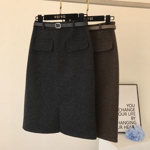 毛呢半身裙2025新款洋气开叉半身裙梨形外穿中长款冬天厚款裙子