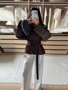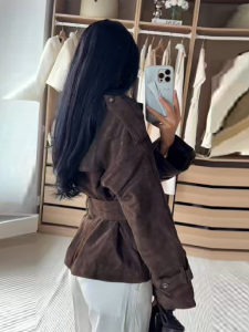 跨境欧美复古2025年秋冬季新款百搭系带翻领长袖夹克外套外贸批发