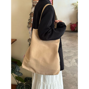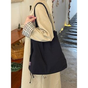 日系复古抽绳束口尼龙布包秋冬新款高级感单肩包小众简约托特包